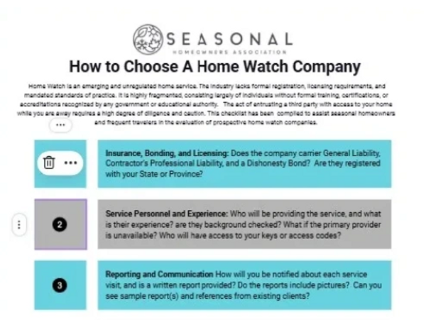 The Seasonal Home Watch Association also supports the companies that foster education and the highest standards in home watch.